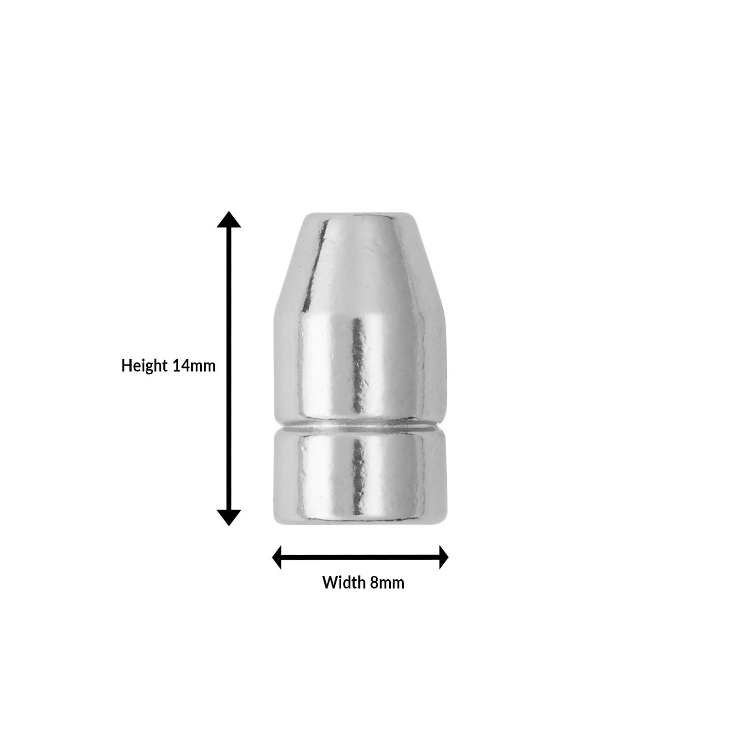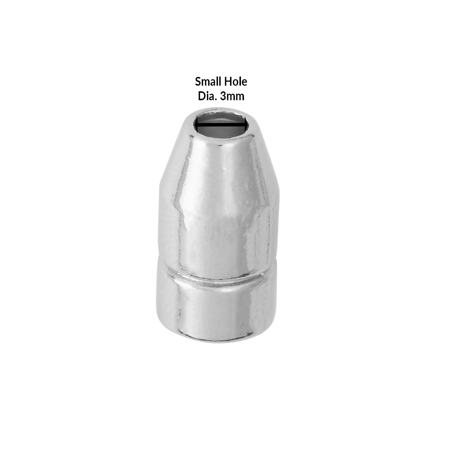 Featuring a strong bullet-shaped design, this metal cord end tidy is suitable for securing up to 4mm shock cord elastic or soft drawstring cord. The streamlined profile offers a clean, modern finish while ensuring cords remain securely held in place.