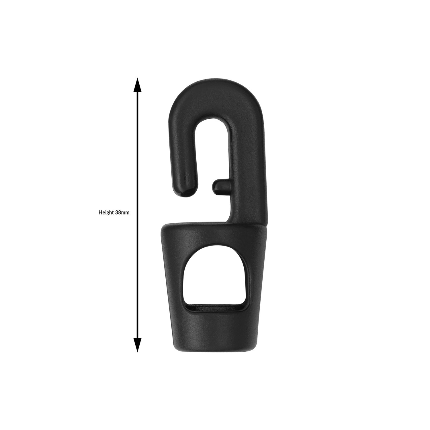 Each mini hook comes in a single standard size, measuring 38mm in height with a 5mm opening hole diameter, as shown in the product images. This compact profile makes the hook easy to handle while still providing a secure attachment point. The smooth plastic finish also protects cords and surrounding materials from unnecessary wear during use.