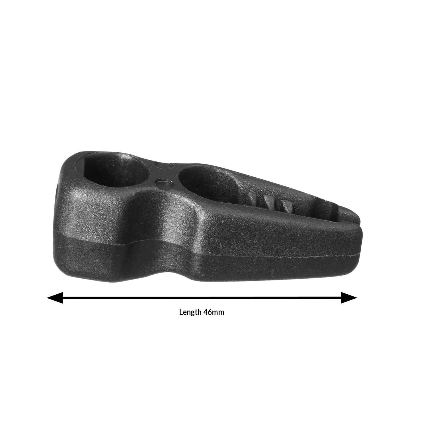 The plastic construction is lightweight, strong, and designed to hold tension securely. The teeth grip the cord firmly, preventing slippage under load. This ensures long-lasting performance in both indoor and outdoor applications.